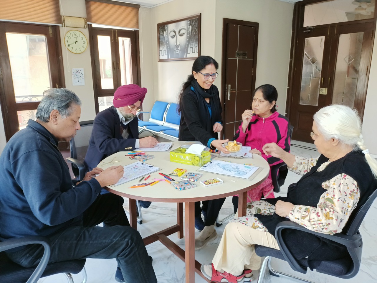 The A.S.H.A. Daycare Facility is a happy gathering of people with early dementia (MCI Stage 1 and Stage 2) who look forward to a day full of fun and activities, socialising with fellow patients and enjoying life to the fullest. A.S.H.A. welcomes its inbound patients who are escorted by their family members to the centre to spend the day under specialised dementia care of the team of A.S.H.A. This ritual is a great relief for the family caregivers who get time for themselves to continue with their professional life and other occupations without worrying about the welfare of their elderly loved ones during the day.
